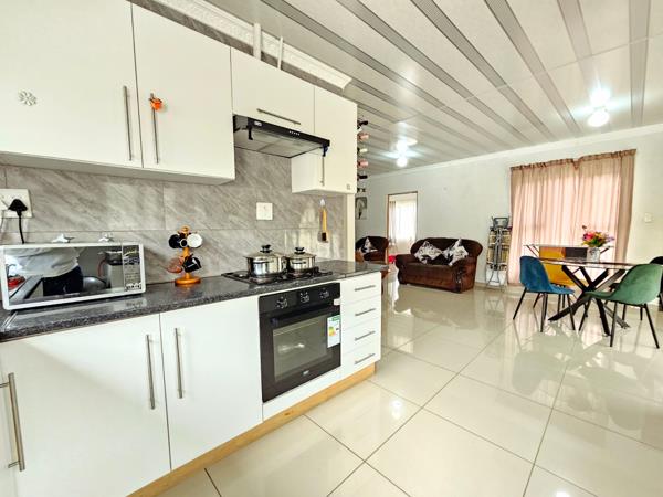 The spacious kitchen boasts newly installed built in cupboards, blending modern style with