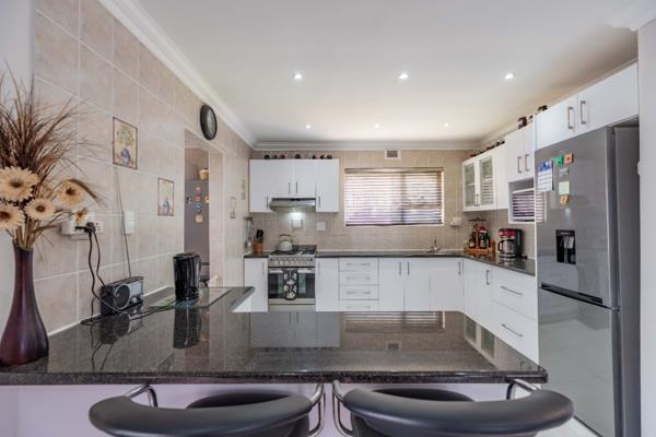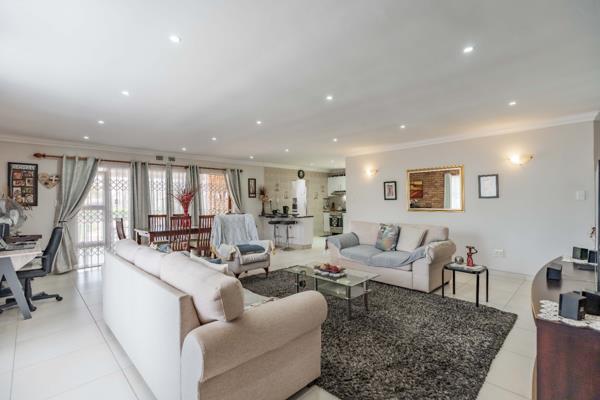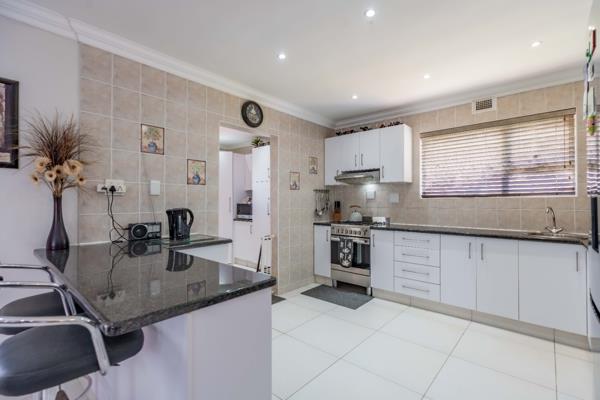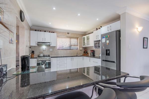 The property offers two comfortable bedrooms, each complemented by its own en-suite bathroom, ensuring privacy and convenience. Outside, a well-maintained garden provides a serene escape, perfect for relaxation or outdoor entertaining. Enjoy the fresh air from the patio, an ideal spot for morning coffee or evening gatherings. The property also boast of a fully fitted flatlet with one bed and an en-suite for rental or external family living The presence of water tanks contributes to water resilience, a valuable feature for sustainable living. The interior boasts neutral tones, tiled flooring, and modern recessed lighting, creating an adaptable canvas for your personal style. The contemporary kitchen is a highlight, featuring sleek white cabinetry, dark granite countertops, a breakfast bar, and a convenient pantry.