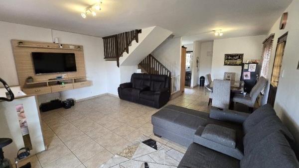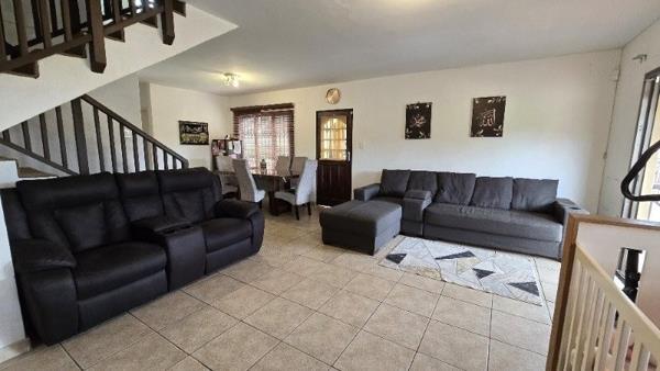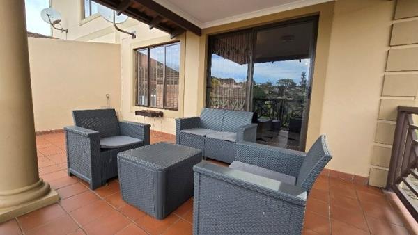 Set in an upmarket complex with tight, 24 Hr manned security. This spacious unit offers 3 bedrooms (BIC). 2 bathrooms (Includes a shower ensuite) + a guest loo down stairs. Granite fitted kitchen (UCO + HOB). Open plan lounge & dining room. Large covered patio which is partly open. Makes a great entertainment area, enjoy sun downers & coffee breaks. Not to mention the views! Double garage for secure parking.