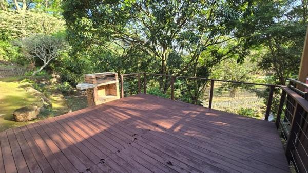 At a decent 92 SQM. Fully tiled, with porcelain tiles throughout. Boasting 2 bedrooms BIC. Family bathroom. Open plan melamine fitted kitchen GAS HOB ELEC OVEN & breakfast nook. Lounge & dining. Large wooden deck. Built in braai & pet friendly garden Pets by permission.