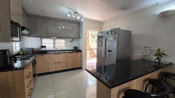 Lovely bathroom with space for a top loader washing machine. Stunning, granite fitted kitchen (Under counter oven & hob) as well as a breakfast nook. Large lounge PLUS a study or office space. Enclosed veranda patio with Maxi door sliding gates & roll down weather blinds. PVT garden (Regret no cats or dogs permitted). Covered parking & available open parking.