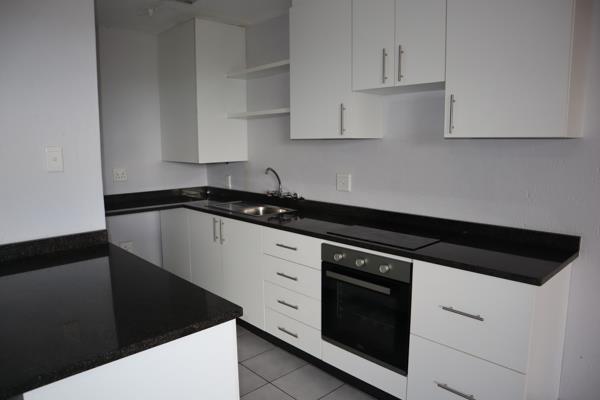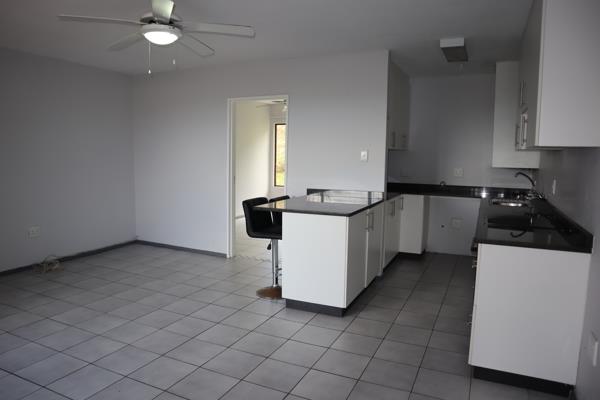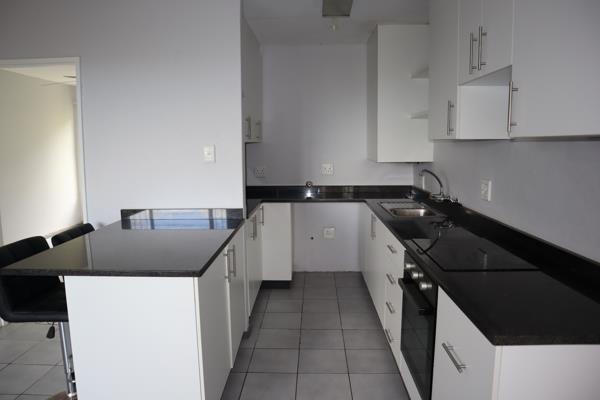 Fully tiled and modern 1 bedroom ground floor flat with built in cupboards, open plan lounge with a ceiling fan and kitchen fitted with granite counter tops, built in oven and hob and a breakfast nook.