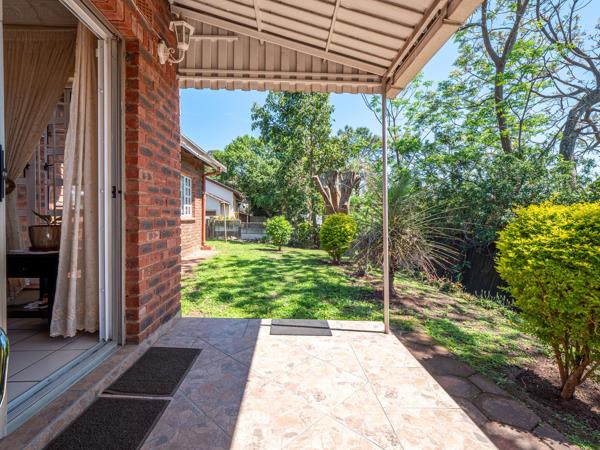 Inside, the open-plan lounge and dining area is bright and breezy, topped with charming ceiling roses and flowing out to a covered patio and enclosed garden. Its a sanctuary for morning coffee, weekend braais, and afternoon play under the trees - completely private, completely yours.