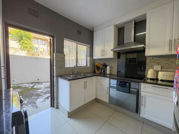 The dining area opens onto a private, easy to maintain garden. The grass maintenance is conveniently included in the levy.