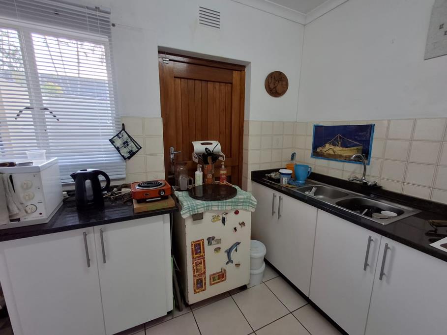Fully fitted kitchen with ample cupboard space (note: stove not included).