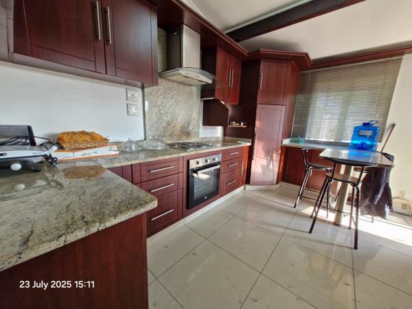 Lounge and dining room is open plan and well positioned to the kitchen. Kitchen offers granite counter tops, oven and hob with extractor, double basin, breakfast nook and ample cupboard space with a large pantry.