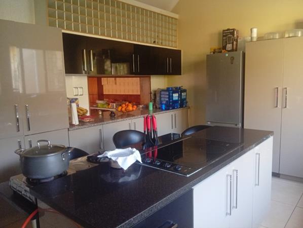 Main kitchen has granite counter tops, a centre isle with seating space, breakfast nook, double basin, wine rack, ample built-in cupboards, access to the back yard and a small scullery. A second kitchen is found off the 2rdnd lounge on the far end of the house and features built in cupboards, oven and hob, breakfast nook, double sink and access to the back yard.