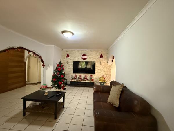 This home offers three spacious bedrooms, with the main bedroom including an en suite bathroom for added privacy. There is also a family bathroom, an open plan lounge and dining room ideal for modern living and entertaining, as well as an airy kitchen with a separate scullery. The property has a separate staff toilet and shower.