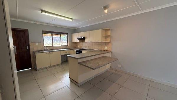Step into this spacious Lock up and Go townhouse, conveniently situated in the heart of Escombe, Queensburgh. With an under-roof size of 152 sqm, this attached simplex offers three bedrooms, two bathrooms one en-suite, an open plan living and dining area, double garage gates not automated, and a courtyard at both entrances of the property. The unit is fitted with an air conditioning unit in the main bedroom, a prepaid electricity meter, and is fully tiled. This simplex is part of a 7-unit complex, offering visitors parking as well. Levy R 945.00 Rates R 1130. A small pet is allowed.