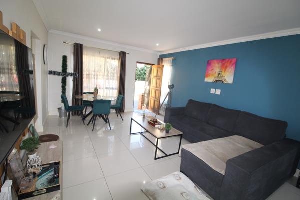 Very neat 3 bed unit nestled on the border of Hillary/Malvern. Open plan kitchen, lounge and dining room. Main bedroom has en-suite. Full family bathroom. Kitchen is fully fitted with Elo/hob, granite and has entrance to the back yard. Easy flow, airy unit, fitted with burglar guards. The complex is fairly new, with 6 units, safe and secure with parking and 1 extra parking bay. Its fully walled, close to all exits, Malls, Schools, and religious centres.