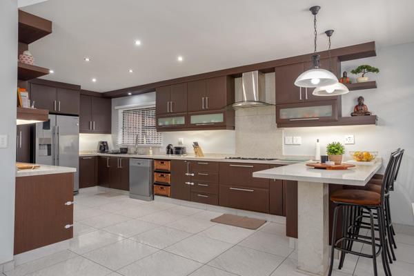 In the prime, sought-after Ridley Park area in the prestigious neighborhood of Malvern, Queensburgh, this upmarket, ultra-modern home epitomises luxury and sophistication in every detail. The prime location enhances the allure of this meticulously designed residence, setting it apart as a pinnacle of contemporary living. From the moment you enter this majestic creation you immediately feel the essence of a family home.
