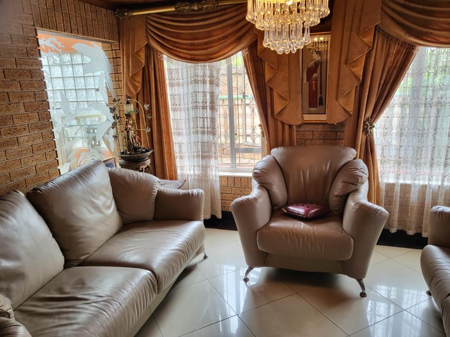 This immaculate and spacious 5-bedroom home in Burlington Heights is perfect for large families or those who love to entertain. With ample space inside and out, it features 4 carports, a double garage with built-in cupboards and laundry facilities, and additional parking for four vehicles. The modern oak kitchen boasts granite countertops, a gas hob, oven, and two breakfast nooks, seamlessly complementing the porcelain-tiled ground floor, which includes two lounges, an elegant dining room, and two bedrooms (one en suite). Upstairs, a grand staircase leads to a landing with an office and three en suite bedrooms, ensuring comfort and privacy. The property also includes a magnificent pool for summer relaxation, a granny flat ideal for extended family or rental income, and robust security features like electric fencing, an alarm system, security doors, and an intercom setup. Combining luxury, functionality, and abundant space, this home is a must-see for discerning buyers. Call us today to schedule a viewing!