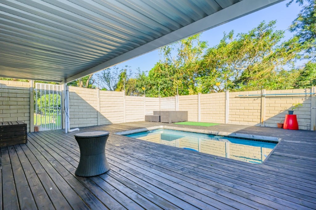 Beautiful modern 3-bedroom unit, main bedroom with en-suite set in the loft, 2 bedrooms downstairs with full bathroom and guest toilet. Fitted built in cupboards in all bedrooms, combination of style, class of its own, open plan lounge, leads into fitted kitchen with all white cabinetry, Caesarstone tops, centre island with stand alone gas stove. The dining room leads, into glass enclosed patio flows decked pool, ideal enclosure for privacy. Fitted with a stove, sink, and cupboards for the comfort of outdoor entertainment. The layout of the unit with the outdoor area invites relaxation, peace, calm and tranquility.