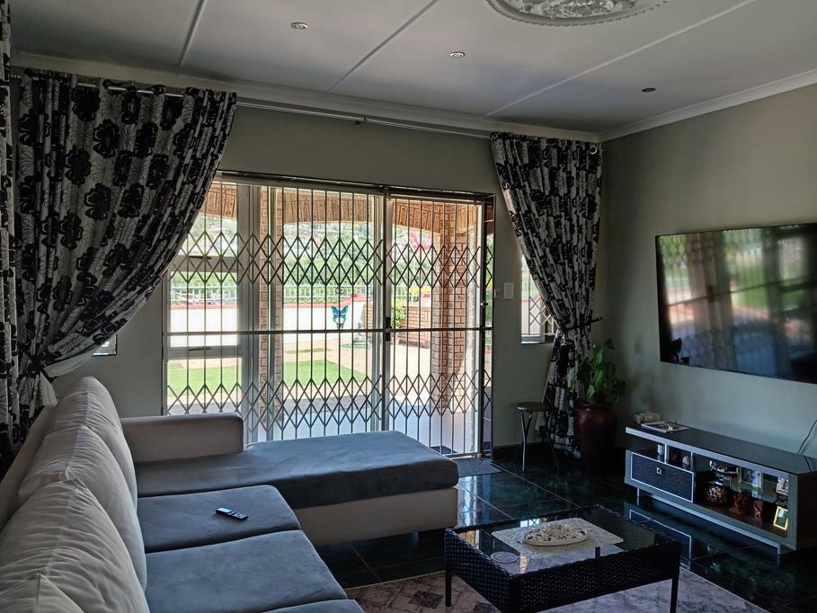 Featuring 5 elegant bedrooms with built in cupboards, prayer/linen room, modern fitted kitchen ideal for culinary enthusiasts, bright and airy lounge and dining room opening out onto massive courtyard, and 3 bathrooms.