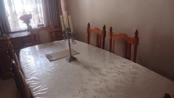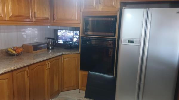 This well maintained family home offers comfort, space and security ideal for extended families or those who love to entertain. The property boasts 4 generously sized bedrooms all fitted with built-in cupboards including a master bedroom with an en-suite bathroom. A full family bathroom with a separate toilet cater to the households needs. The home features multiple living areas including a formal lounge, TV lounge, dining room and a private study - perfect for remote work or a home office. The fully fitted kitchen is designed for convenience and functionality. Additional features include ceiling fans in two bedrooms, air conditioning in two bedrooms and dining room. A 1000 liter JOJO tank connected to the entire house with municipal water supply. Ample parking is available with a single garage, a carport for three vehicles and open parking for an additional three vehicles. Security is a top priority with burglar guards, a security gate, a burglar alarm system, electric driveway gate and CCTV surveillance. The property also includes a storage room and practical extras to ensure comfortable living.