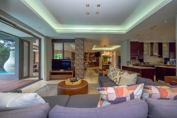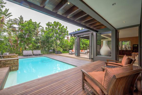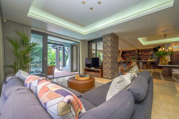 This exquisite residence boasts four spacious en-suite bedrooms, including a lavish main suite with a walk-in dressing room. The expansive open-plan living spaces exude sophistication, seamlessly blending elegance with functionality. The gourmet kitchen, fitted with top-of-the-line Smeg appliances and a discreet scullery, is a culinary masterpiece designed for entertaining in style.