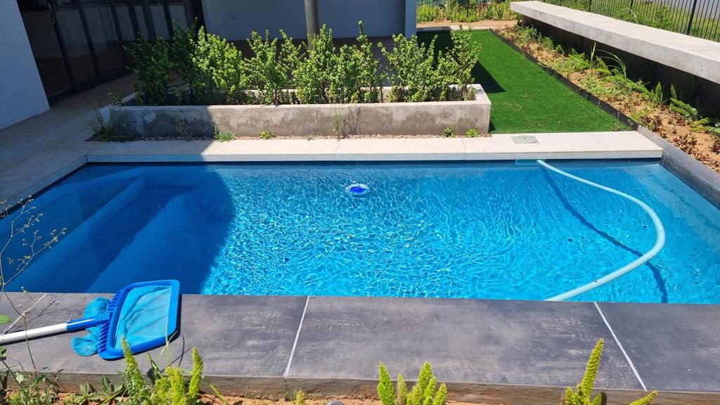 This exquisite four bedroom residence has every modern convenience. You enter this home and are greeted by high ceilings and spacious open plan. The first floor features the open plan lounge, dining and kitchen area leading to the pool and outdoor patio.The designer kitchen is fitted with SMEG appliances followed by a fully fitted scullery and laundry area.