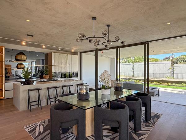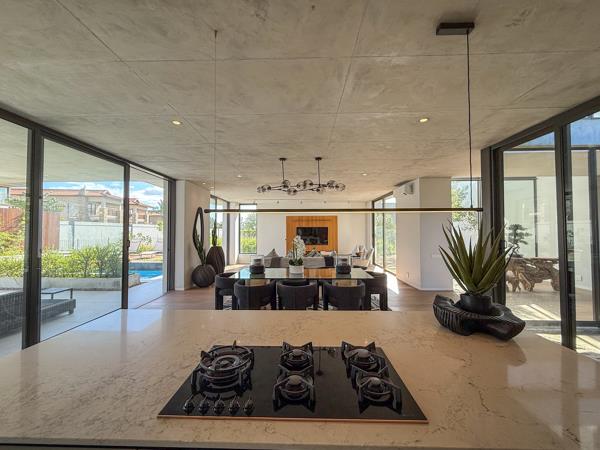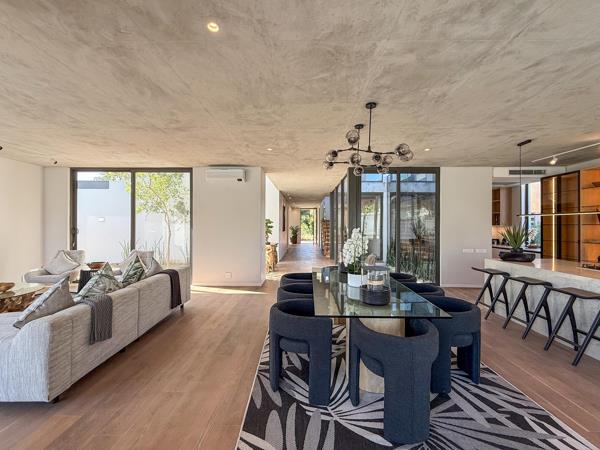 From the moment you step inside, the attention to detail and impeccable finishes are unmistakable. The open-plan gourmet kitchen, complete with a separate scullery and laundry room, boasts sleek, high-end finishes and flows seamlessly into dual dining areas and a spacious lounge all framed by full-height glass doors that flood the interior with natural light and invite the outside in. Downstairs, a beautifully appointed guest suite offers its own en suite bathroom and a private outdoor shower, set beside a peaceful zen garden creating a serene retreat that combines privacy and luxury.
