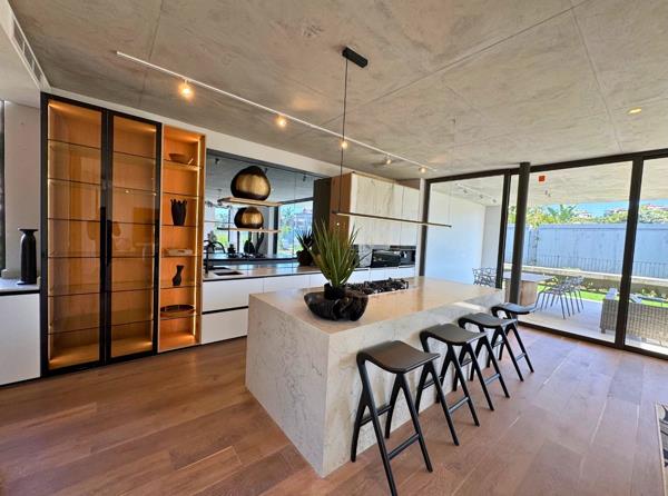 From the moment you enter, youre greeted by expansive open-plan living spaces finished with the highest standards of contemporary design. The sleek gourmet kitchen, complete with a separate scullery and laundry room, flows effortlessly into the spacious dining and lounge areas all framed by full-height glass doors that invite natural light and connect the indoors to the tranquil outdoor spaces.