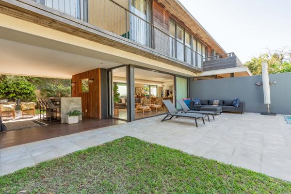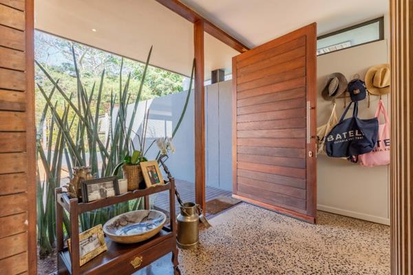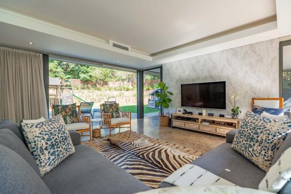 The home is wrapped in an architectural language of clean lines, timber cladding, and layered glazing, softened by greenery and perfectly set within the indigenous surrounds of Hawaan Forest Estate. Here, privacy, tranquillity, and security are assured, while Umhlanga Village, main beaches, top schools, and celebrated restaurants lie just moments away.