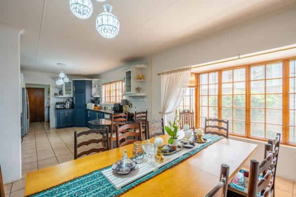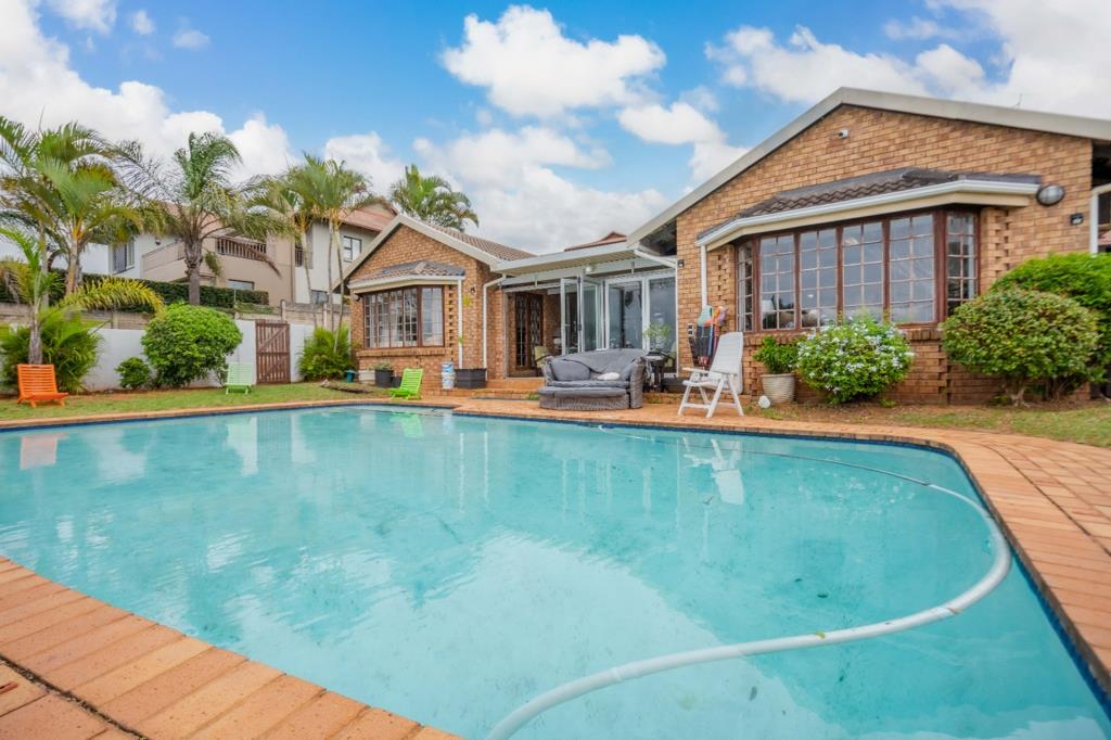 Adjacent to the dining area, you have a spacious, bright, and airy bedroom with scenic views that has a door leading to a second dining area or covered patio that''s currently used as a breakfast area for guests. The master bedroom will take your breath away with its ample cupboard spacing, tiled floors, loads of natural light, and a gorgeous en-suite bathroom with a bath tub, toilet, basin, and shower. There are two evenly sized bedrooms with built-in cupboards and a fourth room that can be used as a study or office. Fully tiled family bathroom. The lounge area leads to a covered patio that flows to the heart of the home, an outdoor area that''s perfect for entertaining guests and accommodating family gatherings. A huge swimming pool is neatly paved around with a perfectly maintained mowed lawn and garden area that blends in with the home and bonus amazing sea views. This home boasts a range of security features, including electric fencing, remote-controlled access gates, as well as burglar bars and Trellidor gates.