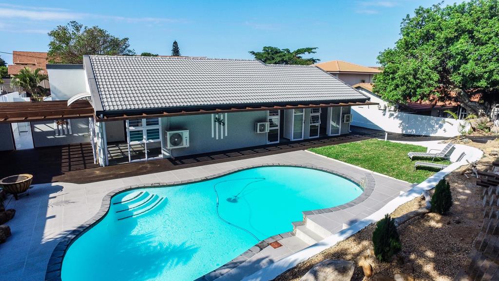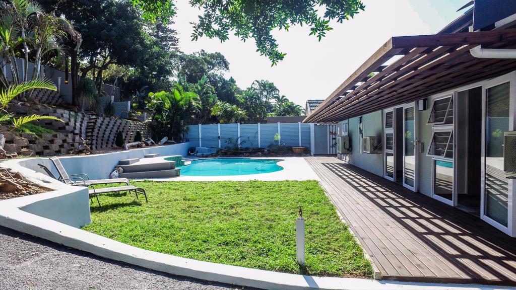 A unique amalgamation of quality craftsmanship, modern materials and attention to detail has produced a remodelled Airbnb home of absolute distinction. Herrwood Park in Umhlanga is becoming the most sought after location for holiday accommodation property with excellent land values that lean to distinctive renovations. This Airbnb candidate home is an inspiring fusion of ideas that take it to the top of the list. The house features two independent dwelling areas with spacious interiors. Each section has independent holiday earning potential equivalent to some of the the best offerings in Umhlanga. The Origins drift wood porcelain tiles provide a look that is natural and organic, completely influenced by real wood in all its moods, the range is spot on for a look that is both rustic and modern. These tiles are durable and provide a natural earthy feel to beautiful spaces in the kitchens, sitting areas, bedrooms & bathrooms. All the windows and sliding patio doors are framed in white powder coated aluminium finish. Windows and doors can be opened to embrace a profusion of colour and scent. Sliding glass doors open out to a timber deck, adding to the feeling of space and openness from the stunning deck to the sunny living areas, there''s no shortage of beautiful spaces. Outdoor lighting makes a dramatic spectacle of the garden by night. Kitchen cupboards are high quality white MDF doors with a crisp minimal space feel. Bedroom cupboards have a driftwood look that complements the colour ensemble. All living areas and bedrooms have openings to the sparkling pool deck and garden. The abundance of glazing opens the house up to the natural surroundings and attracts the sun. The combined casual dining room, living room and kitchen space makes up the largest room in the home. The laundry conveniently opens to the back garden and clothes line. The granny cottage is a totally self-contained apartment with the same theme and feels as the main house.2-5 minute drive, you will be spoilt for choice with Shops, Malls, Restaurants, Coffee Bars and Swimming Beaches. This includes the vibrant and cosmopolitan Umhlanga Village, the spectacular Gateway Theater of Shopping Center, the famous Umhlanga Promenade stretching 2.8km along the beach front to the famous and beautiful Umhlanga Pier and Lighthouse. Furniture Optional