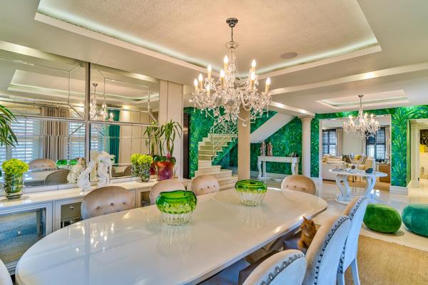 This exquisite home is a must to see situated in Herrwood Park, an upmarket suburb of Umhlanga. It is palatial and elegant and has all the mod cons and creature comforts. This home has road appeal with 3 automated garages and plenty of off-street parking. The garden is manicured with loungers at the pool side, a water feature and a covered verandah with a sky light and elegant chandelier, which flows onto the pool. Cottage pane stack back doors complete the elegance and the flow for entertaining. It is an entertainer''s dream.