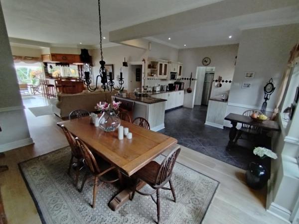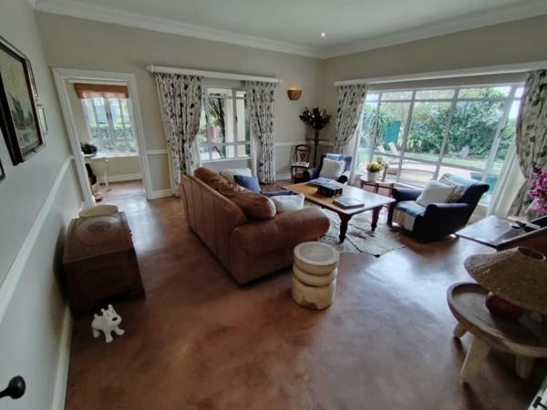 This flows seamlessly into the dining area, an atrium, and a covered patio with a built-in braai, ideal for indoor-outdoor living and entertaining.