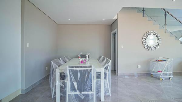 525 SQM BRAND NEW, FREE STANDING TOWN HOUSE IN SECURITY ECO ESTATE, IZINGA UMHLANGA, AVAILABLE IMMEDIATELY! 2 X GUARD HOUSES SURROUND THE COMPLEX EXTERNALLY , BIOMETRICS, WHILST THE ESTATE HAS ITS OWN INTERNAL GUARD HOUSE, DOUBLE CAL DE SAC, ELECTRIC FENCING, IN BOOMED OFF ROAD 5 X BEDROOMS WITH 5 EN SUITE BATHROOMS, TOTAL 7 BATHROOMS 60 BUILT IN CUPBOARDS TOTAL 60 KITCHEN UNITS TOTAL 1 X LARGE GUEST BATHROOM, WITH EXIT DOOR ALL, WALK IN SHOWERS 1 X OUTSIDE BATHROOM 4 X GARAGES WITH SHELVING 6 OUTSIDE PARKING BAYS ALL SANITARY WARE IMPORTED ITALIAN, HANS GROHE, WALL HUNG GIBRETTE TOILET SYSTEMS EEZI QUARTZ WITH GLITTER 25 YEAR GUARANTEE 5 X GERMAN SINKS IN KITCHEN PATIO EQUIPPED FOR OUTSIDE COOKING WITH SINK KITCHEN FITTED WITH INTEGRATED TOUCH CONTROL MIELE APPLIANCES MIELE 2 X 900 HOBS MIELE OVEN MIELE DOWN DRAFT EXTRACTOR FAN MIELE INTEGRATED FRIDGE MIELE INTEGRATED FREEZER MIELE MICROWAVE OVEN MIELE STEAMER. GREY POLISHED PORCELAIN TILES, CONCRETE LOOK , WALL PAINTED GREY, HEAT PUMP WITH 2 X GEYSERS OUTSIDE WASH AREA WITH SINK AND WASH TROUGH SEPARATE LAUNDROMAT ALL INTERNAL WALLS HAVE BEEN RHINOLITED AND WATER PROOFED LOW E GLASS DROP DOWN WASH LINES HIGH CEILINGS 3 BALCONIES 2 X TV ROOMS LE GRAND SWITCHES VENETIAN AND ROLLER BLINDS, ENTIRE HOUSE STORE ROOM, 18 SQM AT AN ADDITIONAL PRICE OF R160K STORAGE UNLIMITED 42 CYPRESS AVE GLEN ANIL DURBAN NORTH
