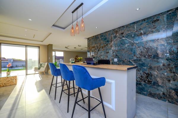 Experience the rare privilege of multiple balconies offering breathtaking views of lush green valleys and the majestic Drakensberg mountain ranges. 15 exterior opening doors, offer seamless transition between indoor and outdoor living. Step into the grandeur of the main downstairs living area, adorned with immaculate matt grey porcelain tiles, exuding a sense of luxury and sophistication. Whether youre seeking respite from the summer heat or simply wish to indulge in barefoot comfort. Every corner of this home is meticulously designed to cater to your lifestyle needs, with ample opportunities for personalization and self-expression. From the thoughtfully chosen ensemble of colors to the awe-inspiring architectural elements. Downstairs, indulge in the luxury of two bright and airy guest rooms, each featuring ensuite bathroom facilities, providing both privacy and convenience for your guests. The double-volume open-plan entrance hall, has abundance of natural light and sense of grandeur. To the west wing are two lounges offering captivating sunset views, complemented by a convenient coffee bar and modern guest toilet. The east wing seamlessly incorporates the open-plan dining area and a fabulous kitchen overlooking a sparkling blue pool. Prepare to be captivated by the pièce de résistance the dream kitchen. Featuring Sparkle Quartz countertops, a Calacatta Gold Island, and top-of-the-line Smeg appliances with Grundig built-in fridges, Every culinary need is catered to with a fitted scullery and walk-in pantry.Thanks to the unique duet conversion, dual access staircases lead to the upstairs bedroom accommodation. These converge upon a cozy pyjama lounge and coffee station, offering the perfect space to unwind. Step out onto two sumptuous balconies and drink in the morning sunrise, setting the tone for a perfect day ahead. The deliberate intention to create bedroom accommodation with unrivalled space is evident in the three capacious bedrooms, each boasting walk-in closets with Kubanite wall units and Sahara gloss tall units finished immaculately with Oak veneer. The ensuite bathroom facilities feature wall tiles and fixtures of the most discerning quality, ensuring a luxurious experience at every turn. Discover the unparalleled lifestyle that awaits you in this extraordinary residence in the heart of Izinga.