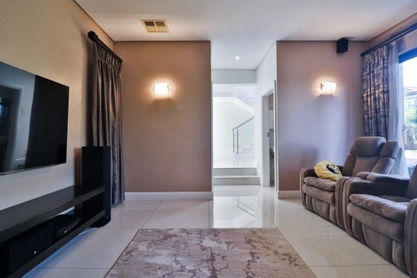 Nestled within the prestigious Izinga Estate in Umhlanga, this modern multi-story residence presents an exceptional opportunity for discerning buyers. Situated in a secure, gated community and a tranquil cul-de-sac, the property offers a nature reserve lifestyle with enhanced security. Its contemporary architectural design, featuring a well-maintained exterior, robust stone-clad fencing, and established landscaping, creates an impressive first impression.