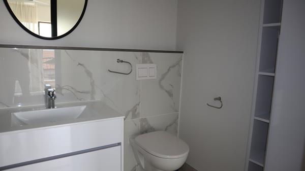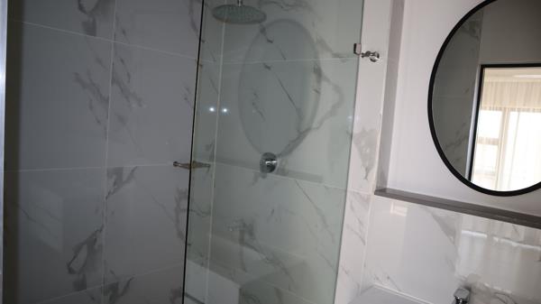 The generously sized bedroom features built-in cupboards and provides a private sanctuary. The elegant en-suite bathroom boasts modern finishes and a spacious shower.