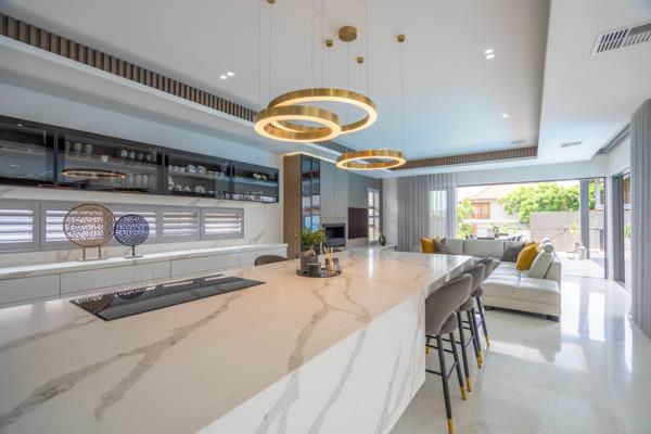 Welcome to this exquisite home . A modern marvel incorporating sleek lines and striking design elements with the extensive use of marble , a featured property in an exclusive Home magazine.