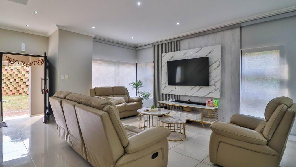 Rawson Property group is proud to present this beautifully designed 3-bedroom residence, offering high-end finishes, spacious interiors, and the peace of mind that comes with top-tier estate living. Perfect for families or professionals seeking refined living in one of Durbans most exclusive neighbourhoods. The home is situated on a corner plot and has a huge lovely garden space which is gated.