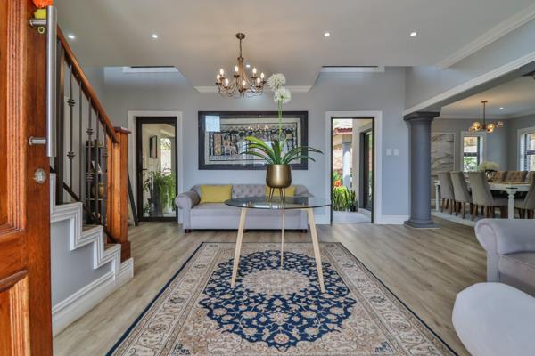 Spacious Living Areas: A welcoming entrance hall leads to open-plan lounge, dining, and TV rooms with commercial vinyl flooring and split air conditioning throughout. Sliding doors seamlessly connect the interior to the picturesque exterior.