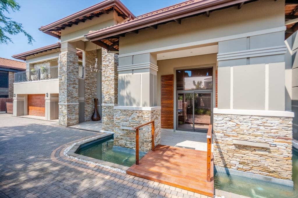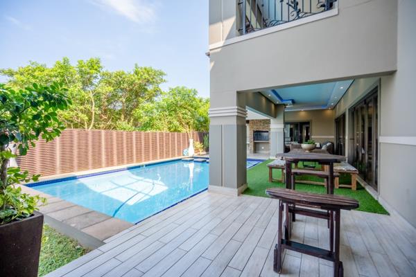 Excellent indooroutdoor flow onto the covered patio with built-in braai, sparkling pool, fire pit and a separate entertainment area with fitted bar designed for perfect entertainment. The floor plan also includes 3 generously sized bedrooms with walk-in closets, 3 modern bathrooms, a private guest suite, upstairs TV lounge and separate study. The elegant main bedroom has a private lounge, walk-in closet, en-suite bathroom and a private balcony.