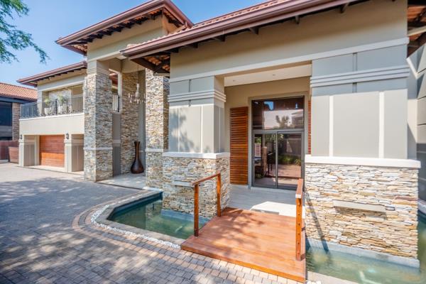 This home has been designed with a heightened appreciation for elegance and poise unifying unsurpassed luxury with a dynamic use of open space. A grand entrance with water features, sweeping staircase, glass balustrades and exquisite chandelier welcomes you to an open plan living space and designer gourmet kitchen with breakfast nook, Caesar stone tops, integrated appliances and a separate scullery.