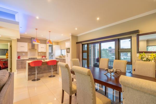 This three bed, three bath villa is located in the sought-after estate of Izinga Hills. Boasting a contemporary design, this home exudes elegance and comfort through-out. The reception rooms are seamlessly integrated on an open-plan lay-out, so that the living room is a continuous flow the dining-room. The modern kitchen features sleek ceasar-stone counter-tops, marrying style with functionality. A scullery compliments the kitchen, with extra cupboards and space for your refrigerator, washing machine and dishwasher. A guest-loo on this level for convenience.