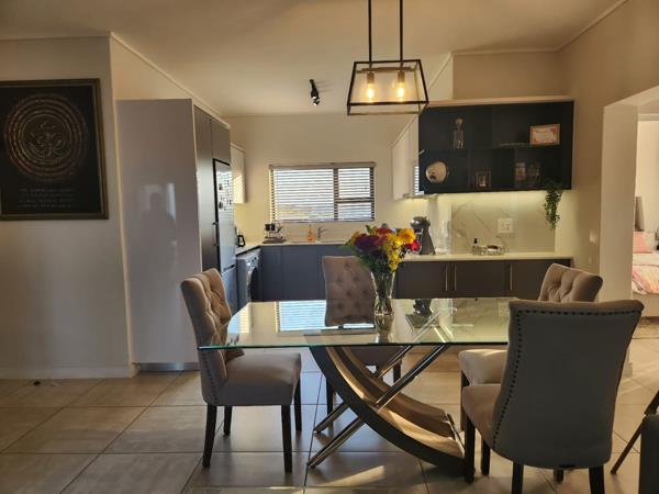 This modern 3-bedroom apartment has been enhanced by the sellers, installing air cons, blinds and additional cupboards space. The apartment is Fibre ready. Down lighting in the living area as well as the bedrooms adds warmth and elegance. A spacious storeroom and 2 secure parking spaces are found on the ground floor.