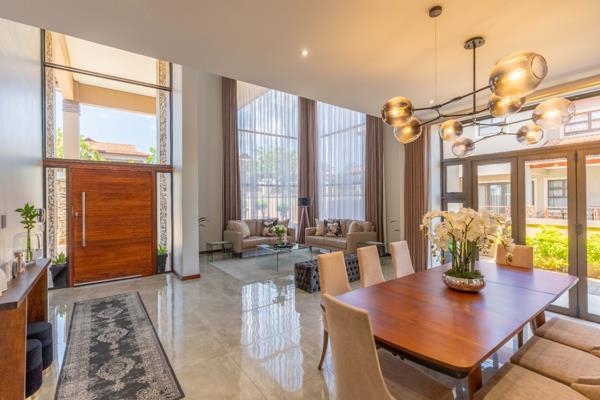 An immaculate home set in a 24hr patrolled area offers elegant open plan living that flows seamlessly from the double volume formal lounge and dining room to the designer kitchen - fitted with SMEG appliances and offers a breakfast nook. Direct access from the double garage into the scullery.