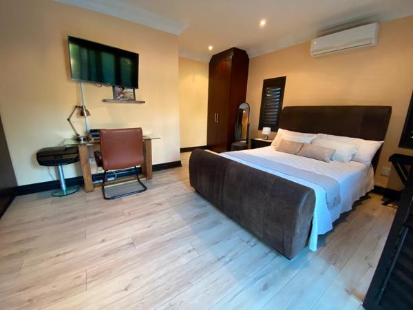 Beautiful 3 bedroom home in a Secure Estate offering modern finishes. All bedrooms are ensuite leading onto a large balcony. A landscaped garden with a sparkling pool and Amazing open plan living area. Spacious kitchen, with a scullery and direct access to the garages, with ample parking. This home is designed for entertainment. An added private garden, for coffee or a reading hideout, this unique feature adds value to the ambiance of this sophisticated lifestyle. This is a very sought after Gated Estate in the heart of Umhlanga. A must view.