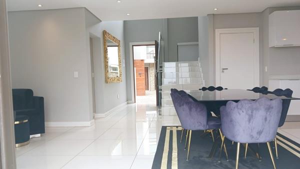 This brand-new, fully air-conditioned triple-story home is a perfect blend of modern luxury and practicality, ready for immediate occupation with no transfer duty. Featuring a designer kitchen with a large scullery and breakfast nook, high-end finishes, and seamless workmanship, the home offers ample space for family living. The open-plan lounge and dining area flow effortlessly into a private garden with a braai area, ideal for entertaining. The third-floor bedroom, spacious enough for versatile use, can easily be transformed into an entertainment room. With a double garage, secure estate living, and access to a communal pool, this property provides the ideal combination of comfort, security, and convenience. Located just minutes from Gateway Mall and King Shaka International Airport, it''s well-suited for families, lock-up-and-go living, or rental income.