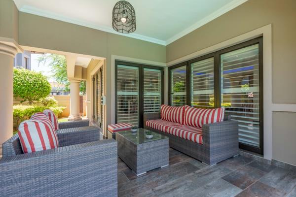 Step outside to the patio, an entertainers dream, overlooking a lush garden and sparkling poolperfect for al fresco dining, braais, and entertaining friends.