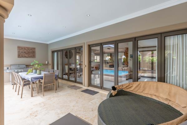 We are delighted to present this elegant and exclusive home, nestled in the highly sought-after Izinga Estate. Upon entering, you are greeted by a stunning double-volume entrance hall adorned with chandeliers, setting the tone for the luxury and sophistication that flows throughout the home.