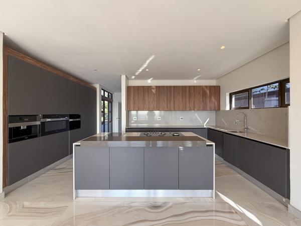 The contemporary kitchen is a chefs delight, featuring high-end finishes, ample workspace, and a separate scullery that leads out to a discreet washing area perfectly combining form and function.