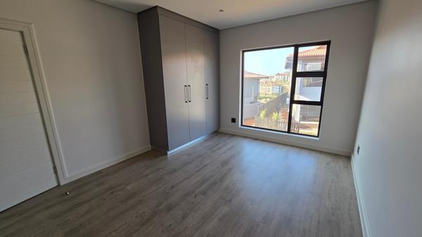 The modern townhouse has an open plan lounge, dinning and kitchen area leading to a outdoor patio this creates a free flow and spacious environment. The kitchen is fully fitted and includes a scullery. Upstairs there are three generously sized bedrooms. The master-bedroom is well sized. All bedrooms are en-suite.