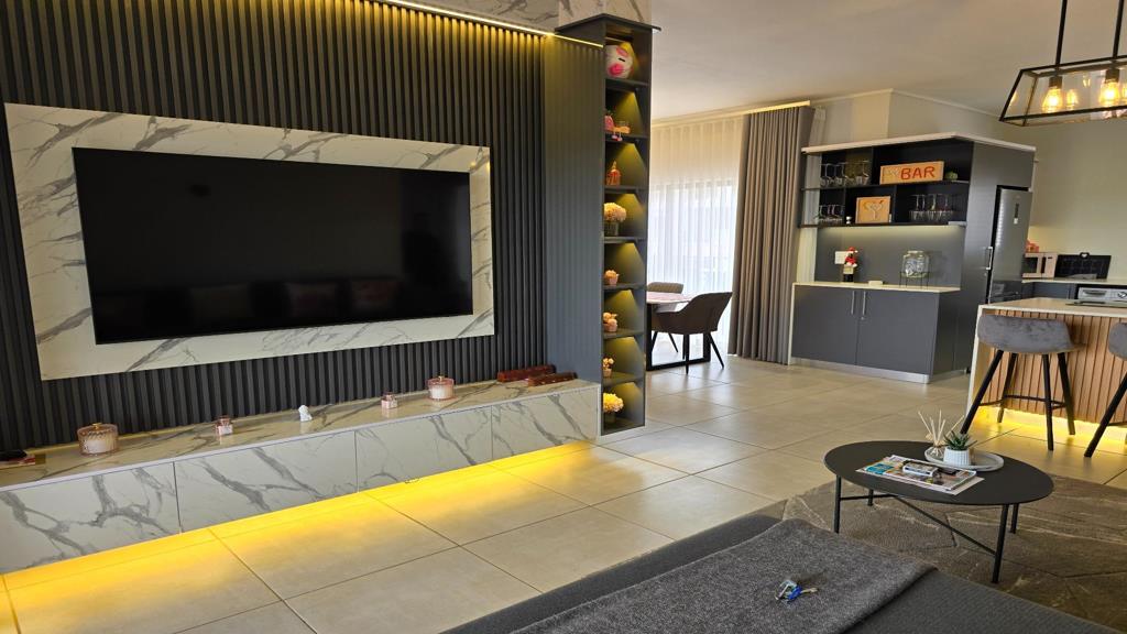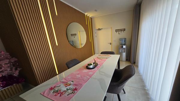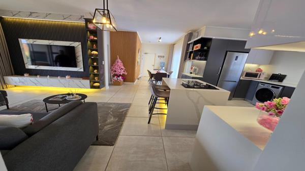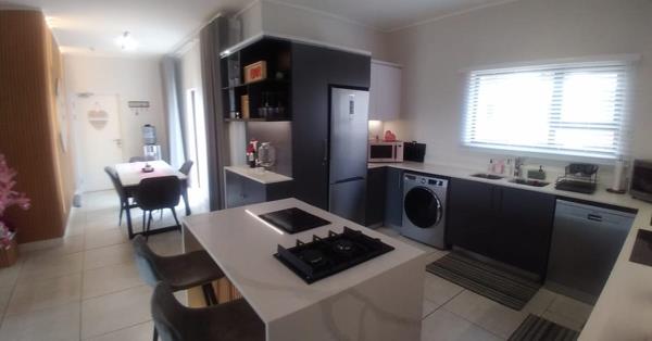 This spacious modern eco-friendly apartment is situated in the sought after Izinga Eco Estate. The three bedroom, two bathroom top floor unit apartment is bright and is tastefully decorated. This apartment boasts an open plan kitchen with high-quality finishes, a coffee station area, a dinette and a lounge that lead to a veranda with a built-in braai area.