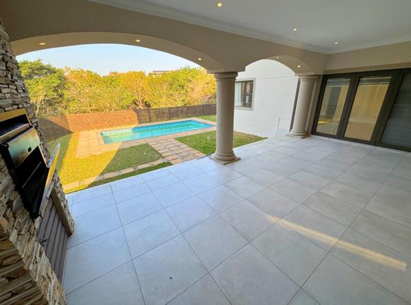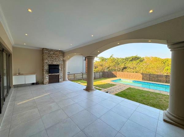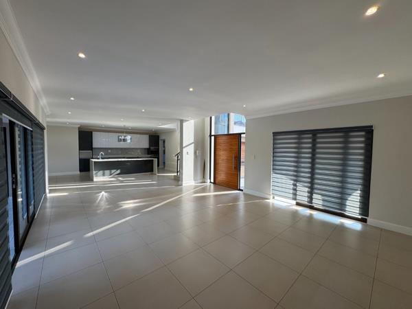 As you step inside, youre welcomed by expansive, light-filled living areas, including two stylish lounges and a fully fitted modern kitchen with a centre island and separate scullery. Flowing seamlessly from the living space is a covered patio with a built-in braai, overlooking the sparkling pool, ideal for entertaining year-round. A convenient downstairs bedroom ensures flexibility for guests or multi-generational living.