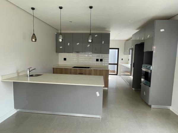 Featuring 3 spacious en-suite bedrooms, this home is designed for comfort and convenience. The open-plan living and dining areas flow effortlessly into a sleek, modern kitchen with quartz countertops, a gas hob, and a separate scullery. Large sliding doors lead out to a covered patio and private garden, perfect for entertaining or relaxing.