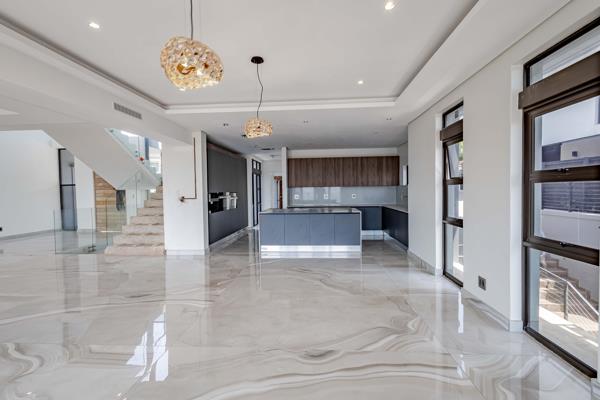 New build multi-level home with sea views. This property features high end, modern finishes throughout. On entrance the open plan lounge, dining room and kitchen extend to a balcony with expansive sea views, pool and braai area. The kitchen is fitted with a centre island, gas hob, eye level ovens and separate scullery. The lower level of the home features a large entertainment space, fire-pit, cinema, gym and wine cellar.